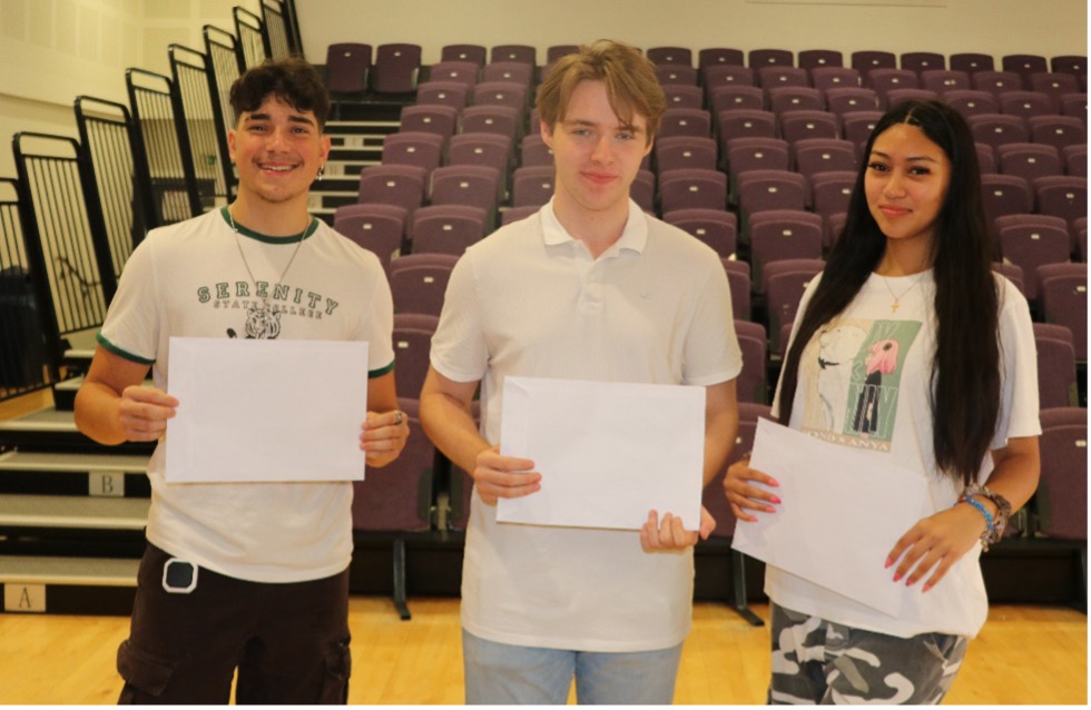 Caption: L to R, Lorenzo, Charlie, Victoria celebrating their excellent results